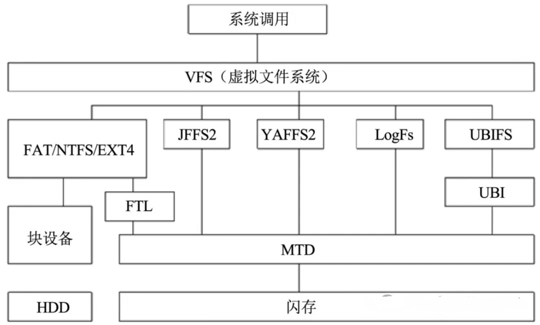 从图中可以看出JFFS2 和 YAFFS2 都是运行在 MTD 之上,UBIFS是运行在UBI之上的,而UBI要运行在MTD之上。所以到这里就涉及了三个子系统UBIFS,UBI,MTB,接下来让我们分别来介绍这三个子系统。